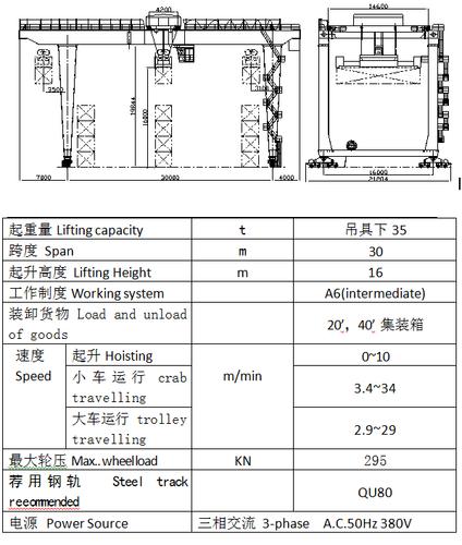 集裝箱門式起重機是大型專業化集裝箱堆場的專用機械,裝卸標準集裝箱,主要用于集裝箱鐵路轉運場和大型集裝箱儲運場的集裝箱裝卸、搬運和堆放。它不僅適用于集裝箱碼頭的堆場,同樣也適用于集裝箱專用堆場。