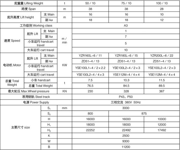 MG型卷揚機門式起重機技術參數: