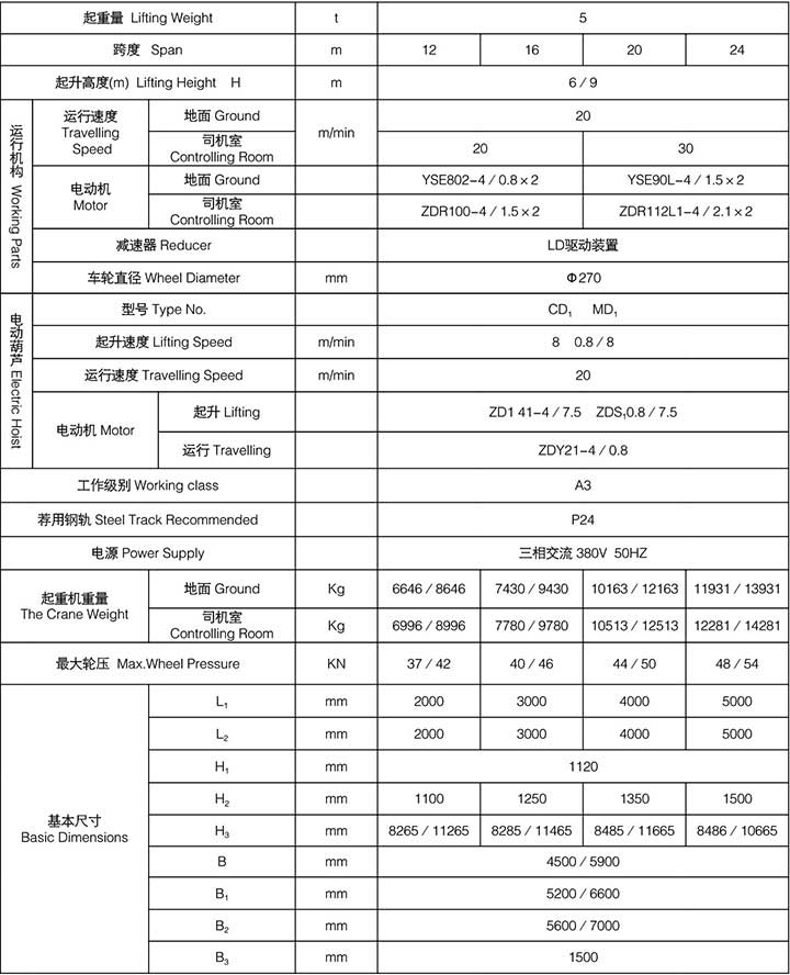 MH型電動葫蘆門式起重機與CD、MD等型號的電動葫蘆配套使用,是一種有軌運行的中小型起重機,其適用起重量5~20噸,適用跨度12-30米,工作環境-20℃~+40℃內。
